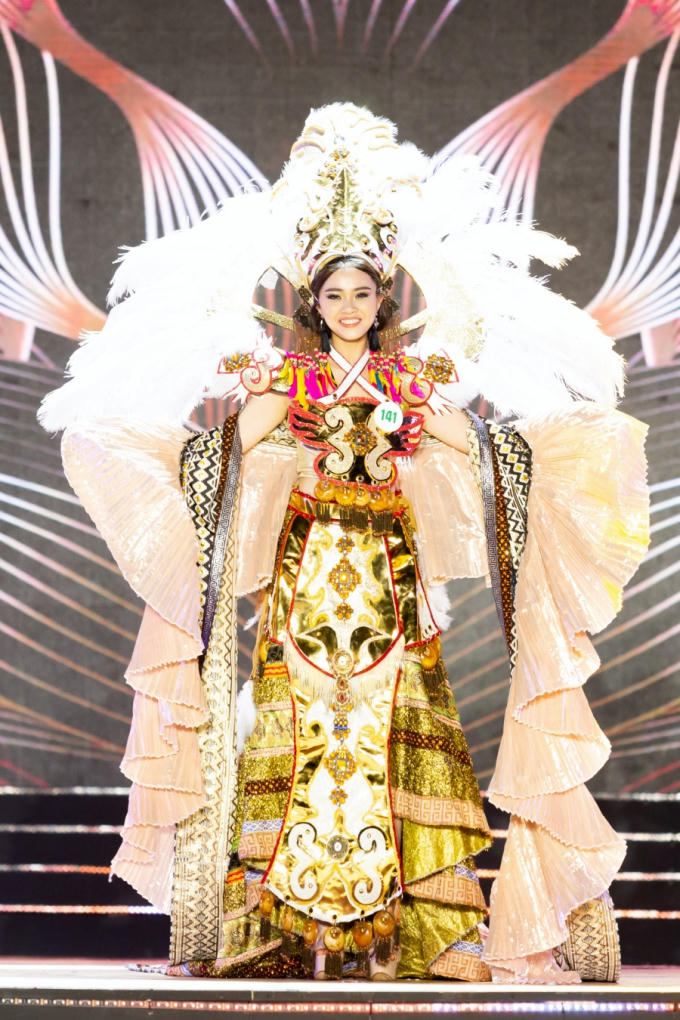 Thí sinh Bùi Bích Diệp khoác lên mình trang phục với sự kết hợp giữa áo dài và áo Nhật Bình cùng với nét văn hóa “Múa bóng rỗi”. Chiếc mâm tháp vàng thể hiện sự trân trọng, lòng tôn kính dâng lên thần linh. Đặc biệt chân váy được thiết kế theo cờ lục sắc, bày tỏ sự ủng hộ đối với cộng đồng LGBT.