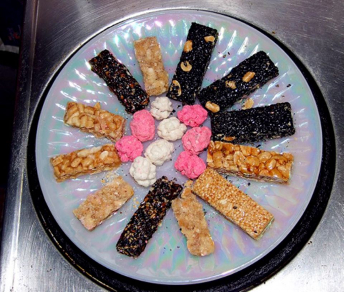 Mâm cỗ cúng ông Công ông Táo cũng khá đơn giản, gồm có bình hoa tươi, đĩa kẹo làm từ mè đen và đậu phộng, nhang đèn, 3 chung nước nhỏ và đặc biệt là bộ vàng mã hình con cò và con ngựa dùng để hóa sau khi cúng với mong muốn tiễn Táo về chầu trời nhanh hơn.