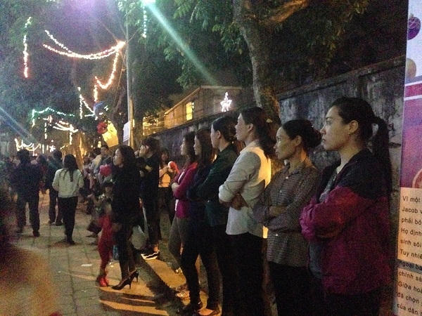 20h30 dòng người đổ về mỗi lúc một đông, ước tính có hàng nghìn người về đây để theo dõi sự kiện này, từ những đôi nam nữ trẻ, đến những vị cao niên, có những gia đình dẫn các cháu nhỏ đến để theo dõi những tiết mục văn nghệ do nhà thờ tổ chức.