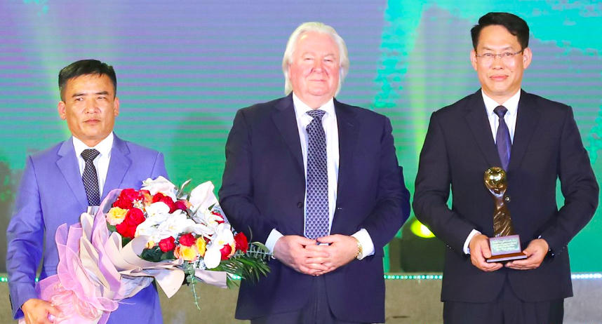 Ông Graham Cooke trao Cúp vinh danh “Điểm đến Thiên nhiên Khu vực hàng đầu Thế giới năm 2022” cho hai huyện Mộc Châu – Vân Hồ.