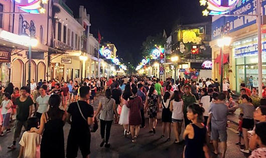 Năm nay nghỉ lễ trùng với lịch hoạt động của phố đi bộ nên đã có rất đông người đổ về các tuyền đường quanh hồ Hoàn Kiếm để hưởng trọn niềm vui Tết Độc lập ở thủ đô.