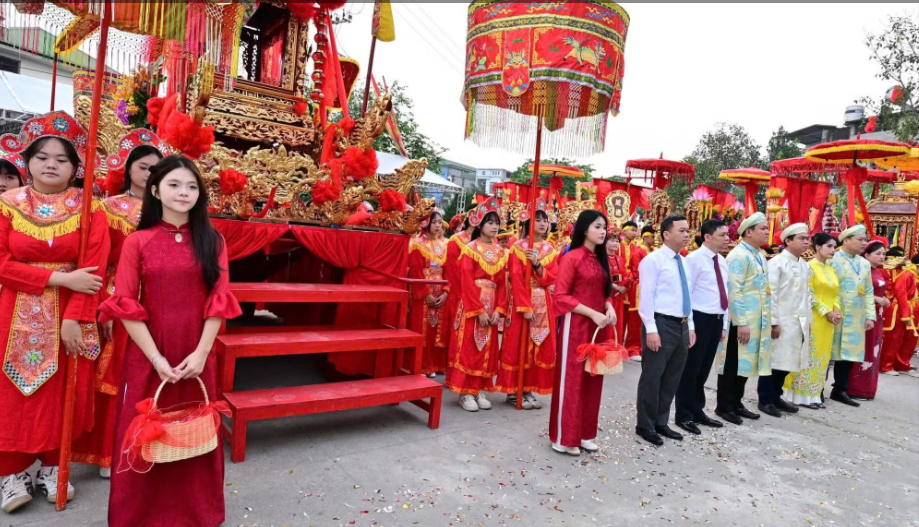 Đoàn rước được tổ chức trang nghiêm với cờ hội, kiệu Mẫu, đội tế lễ, cùng các màn trình diễn dân gian đặc sắc, tạo nên không khí rộn ràng, linh thiêng nhưng cũng đầy sắc màu văn hóa.