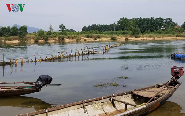Người dân phải đóng cọc tre ngăn chăn nạn cát tặc.