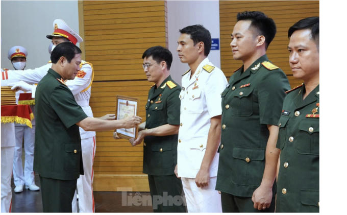 Đại tướng Phan Văn Giang, Bộ trưởng Bộ Quốc phòng và Đại tướng Lương Cường, Chủ nhiệm Tổng cục Chính trị Quân đội nhân dân Việt Nam trao Bằng khen cho các tập thể có thành tích xuất sắc trong tổ chức, tham gia giải thưởng.