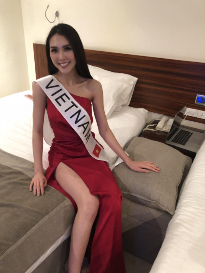 Được biết, người đẹp ở chung phòng với 2 đại diện đến từ Malaysia và Singapore. Cô tiết lộ 2 người bạn chung phòng của mình có sự chuẩn bị rất lớn cho Miss Intercontinental 2017 khi mang theo những bộ trang phục lộng lẫy và bắt mắt.