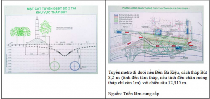 Thông tin quy hoạch không thể hiện luận cứ chắc chắn về sự tối ưu của loại hình phương tiện này tại một trong những khu vực trung tâm thiêng liêng bậc nhất của thủ đô Hà Nội (trái tim của trái tim Việt Nam); Nhưng khi chấp nhận đề xuất tuyến hầm ngầm đường sắt đô thị số 2 (gọi tắt là tuyến tàu điện ngầm/metro) xuyên qua khu phố cổ, xuyên qua khu vực Hồ Hoàn Kiếm (Hồ Gươm), ngay phía dưới nền Đền Bà Kiệu, Tháp Bút thì chắc chắn sẽ va chạm ghê gớm và toàn diện với khu vực này từ vấn đề giao thông, chấn động vật lý đến di sản, văn hóa và tâm linh.