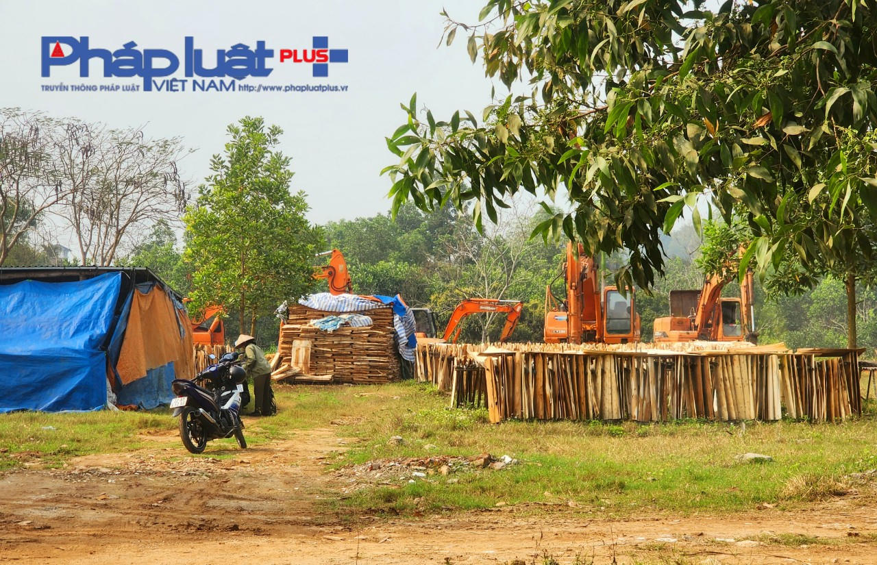 Hiện tại trên bãi đất dự án Khu liên hợp thể thao tỉnh Tuyên Quang, đang tập kết nhiều thiết bị máy móc và các sản phẩm sơ chế bằng gỗ.