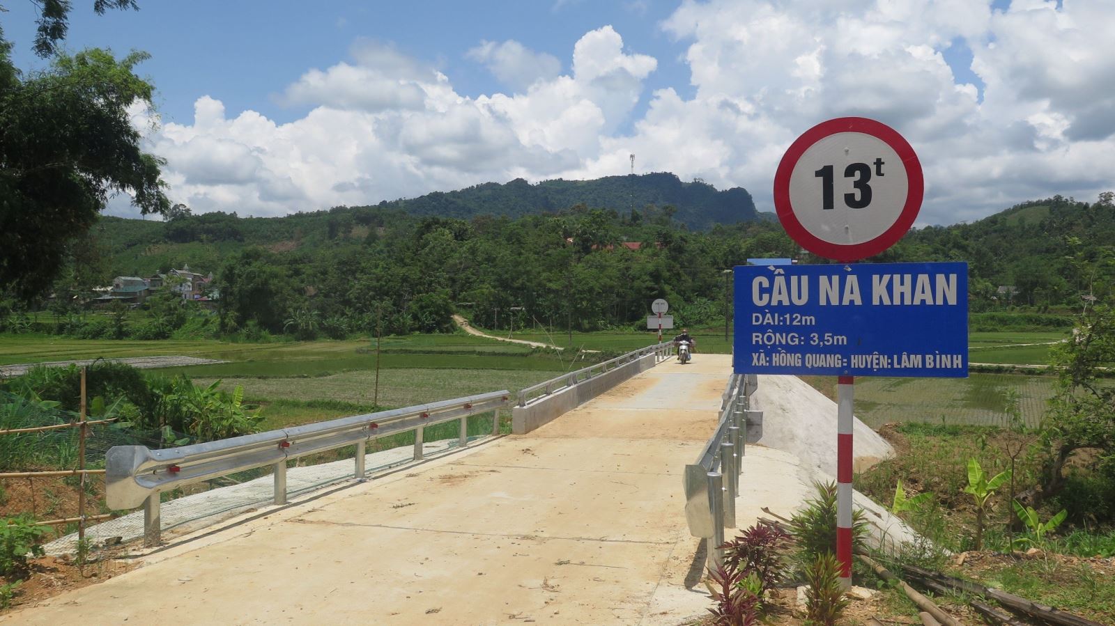 Cầu Nà Khan được hoàn thành và đưa vào sử dụng tháng 5/2023 giúp đồng bào tại thôn Nà Nghè, xã Hồng Quang, huyện Lâm Bình đi lại thuận tiện.