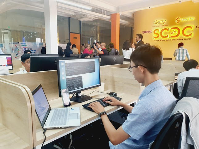 Nhân viên tại một công ty ở Khu công nghệ cao TP Hồ Chí Minh đang làm việc trong lĩnh vực thiết kế vi mạch - công nghệ bán dẫn