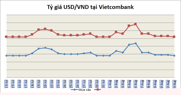 Hiện giá mua thấp nhất đang ở mức 23.102 đồng/USD, giá mua cao nhất đang ở mức 23.160 đồng/USD. Trong khi đó, ở chiều bán ra, giá bán thấp nhất đang ở mức 23.250 đồng/USD, giá bán cao nhất đang ở mức 23.265 đồng/USD.