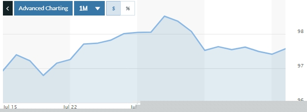 Chỉ số USD trong vòng 1 tháng gần đây. (Nguồn: MarketWatch)