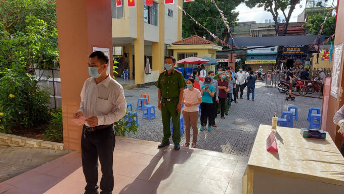 Cử tri ở TP HCM xếp hàng bỏ phiếu bầu cử.