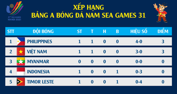 Bảng xếp hạng tạm thời Sea games 31.
