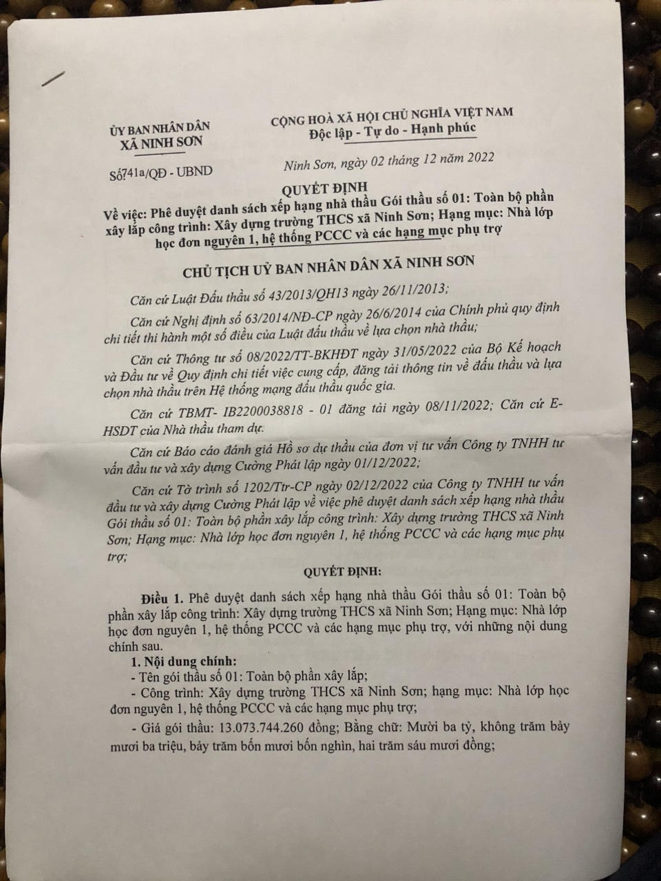 Ngay tại Gói thầu số 1: Toàn bộ phần xây lắp công trình: Xây dựng trường THCS xã Ninh Sơn lại được chia thành 2 hạng mục.