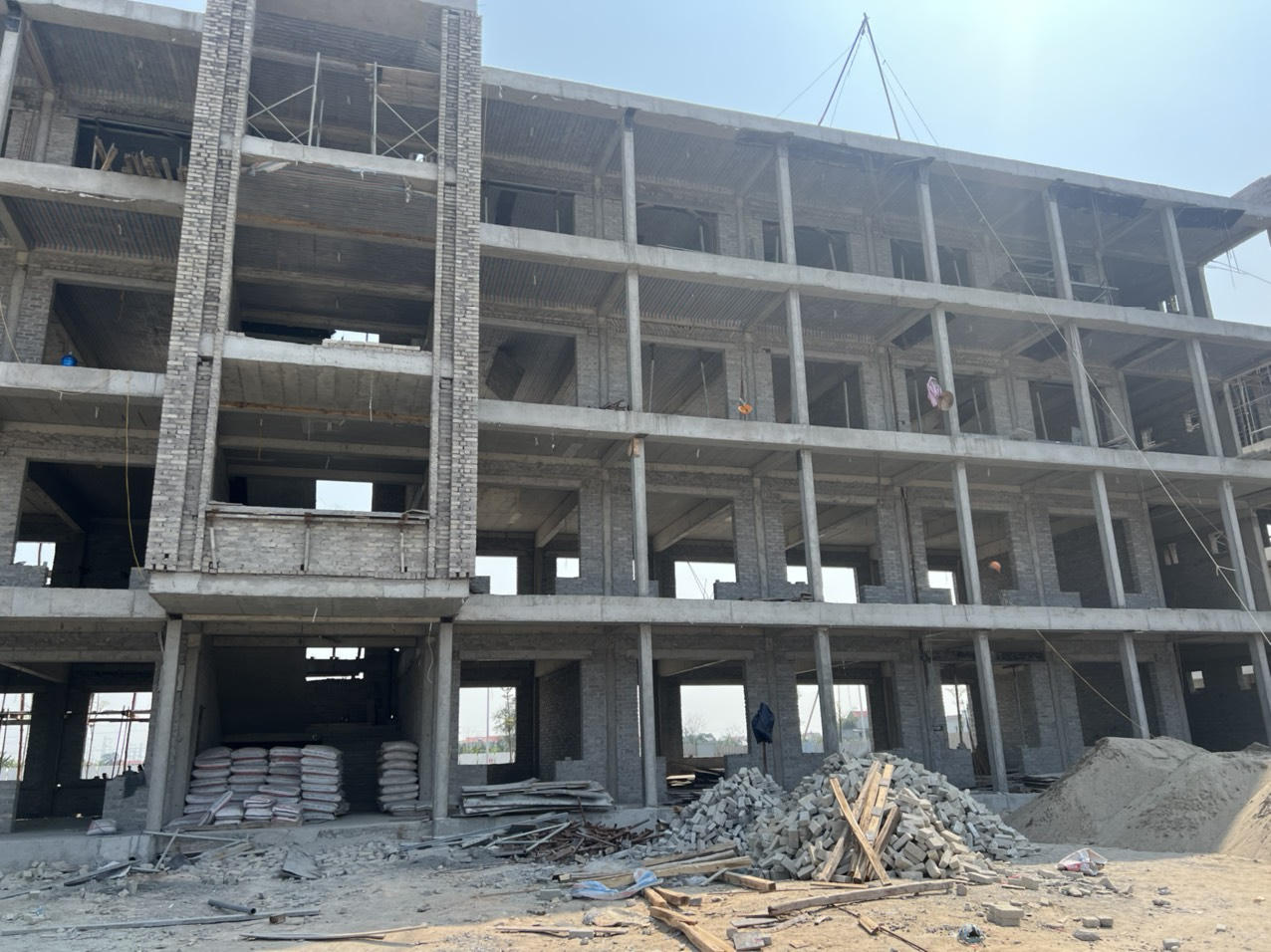 Khu phòng học 4 tầng đã xong một phần xây thô và tiến vào giai đoạn hoàn thiện, công trường đã thể hiện rõ sự cẩu thả, coi thường tính mạng công nhân của Đơn vị thi công.