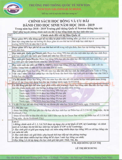 | Theo tìm hiểu của Pháp luật Plus, ngoài trường IVY- League tổ chức tuyển sinh và thu tiến của nhiều phụ huynh, Trường THCS-THPT Newton cũng tiến hành thu tiền của nhiều phụ huynh để nhận con em vào học tại cơ sở 136 Hồ Tùng Mậu (Mặc dù cơ sở này hiện đang vẫn nằm trên... giấy và không được Sở GD&ĐT Hà Nội chấp thuận). Sau khi Pháp luật Plus phản ánh, Trường THCS-THPT Newton đã vội vàng trả lại tiền cho phụ huynh mà trường đã thu. Ngoài ra, theo nguồn tin của Pháp luật Plus, hiện Trường THCS-THPT Newton đang bị phụ huynh tố cáo trường này liên kết với với một ngôi trường không có thật tại Mỹ mang tên George Washington International School (GWIS). Theo chương trình giảng dạy, con em học tại trường sẽ được nhận song bằng của Bộ GD&ĐT Việt Nam và của Bộ Giáo dục Mỹ. Nhưng trên thực tế điều tra thì đây là một ngôi trường ‘ma” không được bất kỳ cơ quan nào kiểm định. Như vậy tấm bằng thứ hai của con em học tại Trường THCS-THPT Newton hoàn toàn là bằng giả. Nhưng phụ huynh đã đóng mức phí rất cao để lấy tấm bằng “ma” này. Nhiều phụ huynh có con em học tại Trường THCS-THPT Newton đề nghị Sở GD&ĐT Hà Nội, UBND quận Bắc Từ Liêm yêu cầu nhà trường có trách nhiệm trong việc này và phải hoàn lại học phí một cách thỏa đáng. |