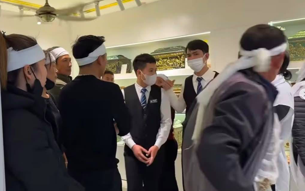 Trong đoạn clip được đăng tải, những người đeo khăn tang bức xúc với nhân viên Công ty Thanh Bình An Lạc Viên khi phải trả giá cao để mua hũ tro cốt cho người thân.