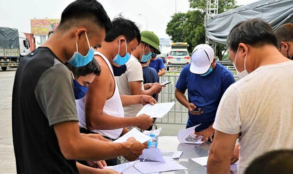 Đến ngày 20/7, lượng phương tiện dồn về chốt kiểm dịch cao tốc Pháp Vân - Cầu Giẽ vẫn đông. Các xe xếp hàng để vào chốt đo thân nhiệt, khai báo y tế kéo dài qua địa phận xã Văn Bình, huyện Thường Tín, Hà Nội.