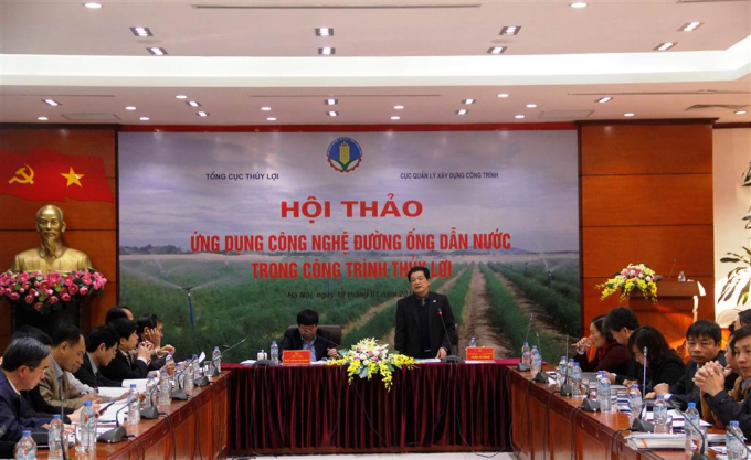 Hội thảo đã được nghe lãnh đạo Cục Quản lí Xây dựng công trình nêu báo cáo về việc áp dụng đường ống trong công trình thủy lợi và báo cáo về sử dụng đường ống trong tưới tiết kiệm nước của Tổng cục Thủy lợi.