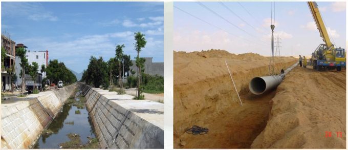 | Kênh hở thường chiếm diện tích thi công và diện tích sử dụng lớn. Việc tuần tra, duy tu, bảo dưỡng, bảo trì phải thực hiện thường xuyên. |