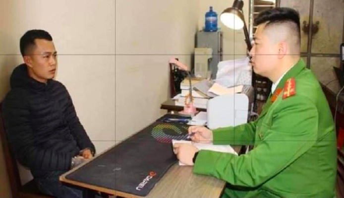 Lực lượng chức năng lấy lời khai đối tượng Nguyễn Văn Hoàng.