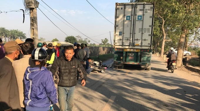 Tại thời điểm trên, nam thanh niên xấu số điều khiển xe máy mang BKS 90H5 - 5606 lưu thông cùng chiều với xe container mang BKS 15R - 095.39 do anh Nguyễn Xuân Hùng (SN 1984, trú tại xã Tân Hưng, huyện Vĩnh Bảo, Hải Phòng) điều khiển theo hướng từ ngã tư Nhổn - Phường Tây Tựu.