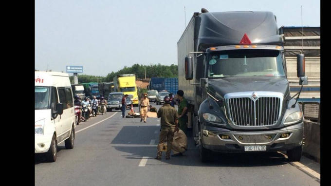 Cú va chạm khiến ông H. cùng xe máy ngã ra đường. Đúng lúc này, xe container mang BKS 79C-114.00 kéo theo rơmóc 79R-005.58 do tài xế Ngô Minh Trường (SN 1969, trú tại Hàm Thắng, Hàm Thuận Bắc, Bình Thuận) điều khiển đi từ phía sau tiến đến, tông vào ông H. khiến nạn nhân tử vong tại chỗ.