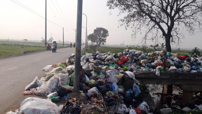 Rác thải ùn ứ ở xã Ninh Sở, huyện Thường Tín (Hà Nội)