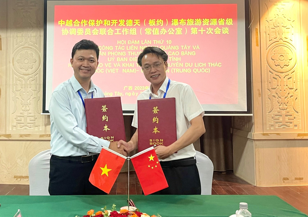 Mới đây, tại Khu cảnh quan thác Bản Giốc - Đức Thiên (Trung Quốc), lãnh đạo Văn phòng UBND tỉnh, Chánh Văn phòng Thường trực Ủy ban điều phối tỉnh Cao Bằng; Ban Hoa Cần, Phó Giám đốc Sở Văn hóa và Du lịch Khu tự trị dân tộc Choang Quảng Tây (Trung Quốc) làm trưởng đoàn đồng chủ trì cuộc hội đàm lần thứ 10 trao đổi, thảo luận những vấn đề liên quan đến phương thức quản lý khép kín; tổ chức lễ công bố mở Lối mở Bản Giốc - Đức Thiên và vận hành thí điểm cho du khách quan lại khu cảnh quan 2 bên.