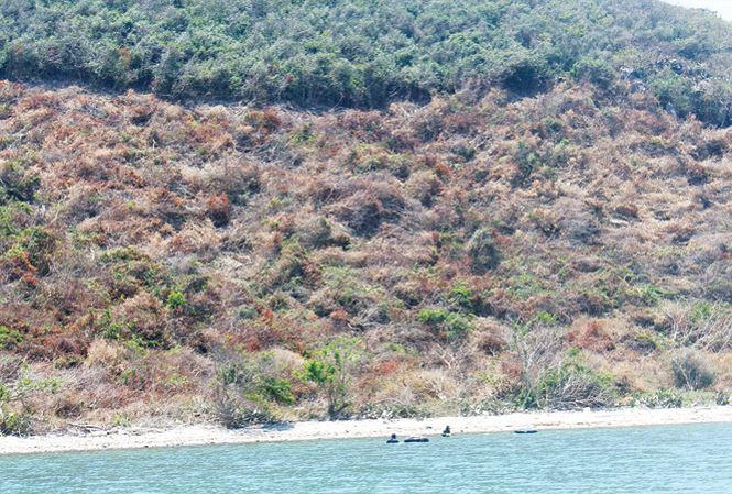 Không dừng tay ở các khu rừng xã Vạn Thạnh, lưỡi rìu của nhóm người phá rừng còn tàn phá các đảo Hòn Ngang, Hòn Đỏ, Hòn Trì. Đồi cây ở đây bị chặt chém nham nhở. Khi thấy lực lượng kiểm tra xuất hiện, họ lập tức bỏ chạy. Nhưng ngay hôm sau lại tiếp tục phá. “Khi đoàn đến là tất cả bỏ chạy hết. Không ai đứng ra chịu trách nhiệm, chúng tôi chưa xử lý được”- ông Trần Kim Bảo, Chủ tịch UBND huyện Vạn Ninh cho hay. Thị trường mua bán đất bát nháo đã trực tiếp gây ra “thảm sát” những khu rừng, hòn đảo - “linh hồn” của đất, biển Khánh Hòa.