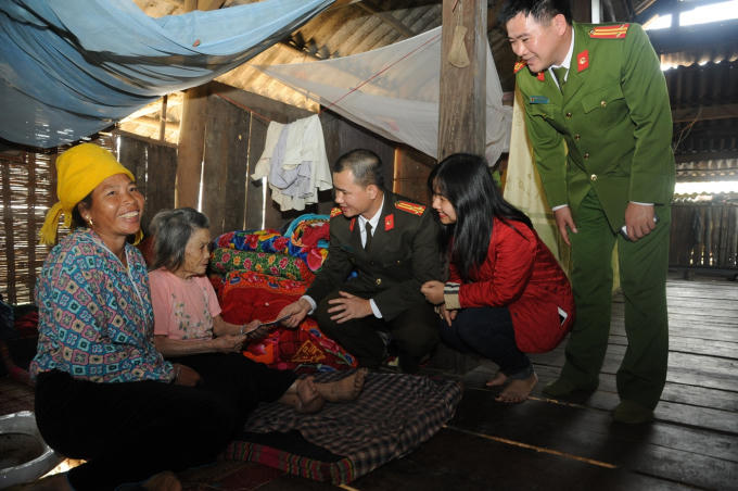 Trên hành trình làm công tác thiện nguyện, đoàn công tác đã đến tận nơi, thăm hỏi, trao tặng những phần quà Tết ý nghĩa tới một số gia đình chính sách, neo đơn. Điển hình như trường hợp của cụ Hà Thị Chầu, 90 tuổi, nhà ở bản Nặm Tọ, xã Thanh Lương, huyện Văn Chấn có người con là Liệt sỹ Hà Văn Sương hy sinh trong kháng chiến chống Mỹ. Cụ tuổi già sức yếu, chân tay co quắp nên không thể đến xã nhận quà. Tại đây, đoàn công tác đã thăm hỏi, tặng quà và chúc sức khỏe cụ.