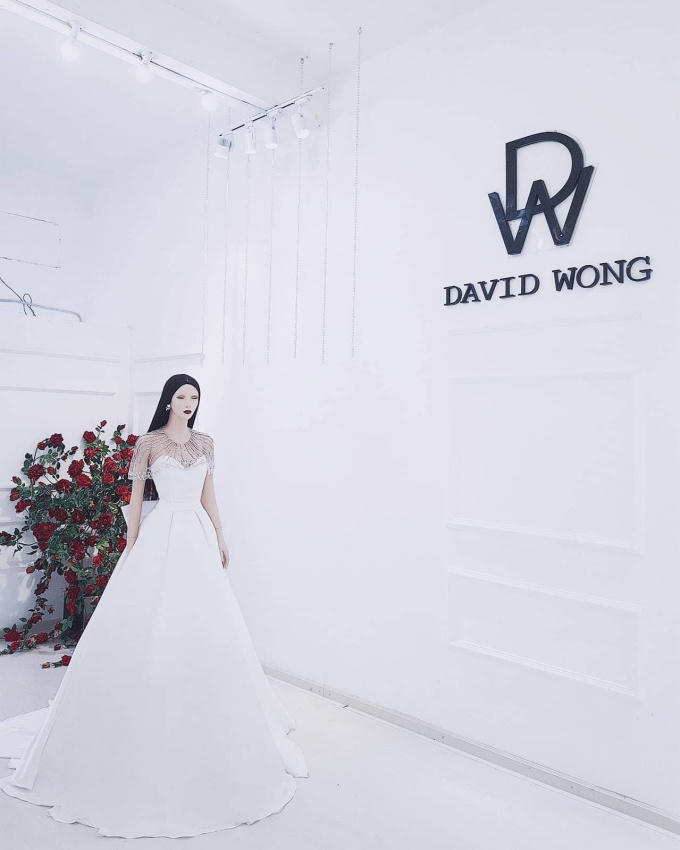 Là thương hiệu đồng hành cùng Lan Khuê trong nhiều sự kiện quan trọng, chính vì thế DAVID WONG cũng không quên dành tặng cho Lan Khuê chiếc váy cưới tuyệt vời nhất nhân ngày trọng đại. Đó là thiết kế kỳ công của NTK Hà Thanh Huy tỉ mỉ đính hơn 10.000 pha lê.