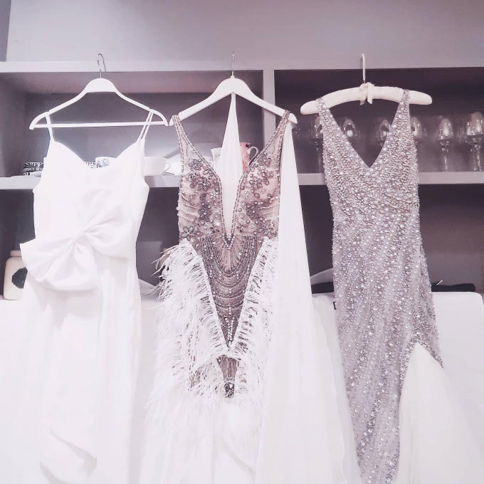 Được biết, toàn bộ những chiếc váy cưới này do thương hiệu DAVID WONG của NTK Hà Thanh Huy chuẩn bị cho Lan Khuê là sự cộng tác của 3 bên gồm: stylist Hensi Lê, NTK Hà Thanh Huy và Lan Khuê. Cả 3 đã cùng nhau trao đổi và lên ý tưởng gần một tháng để chọn ra những mẫu ưng ý nhất.