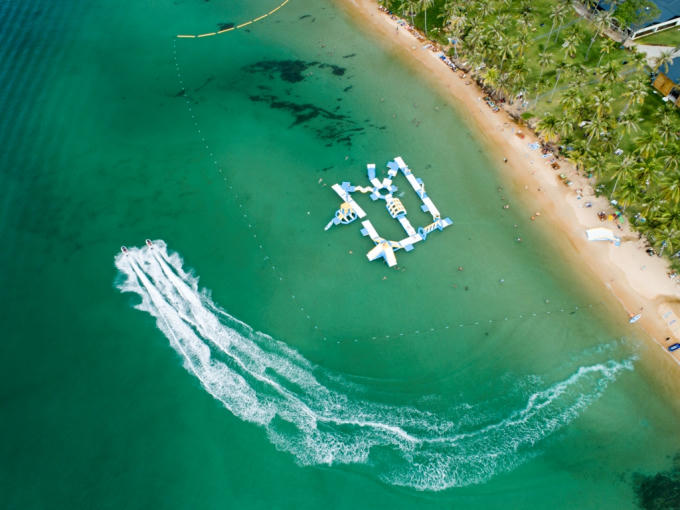 Rời cabin cáp treo, đã thấy cả một miền trải nghiệm hấp dẫn của Tổ hợp vui chơi giải trí biển Sun World Hon Thom Nature Park mở ra. Bãi biển cát trắng mịn như kem, nước trong thấu đáy đẹp khác nào Malpes cho ai muốn nằm dài thư giãn giữa thiên nhiên.