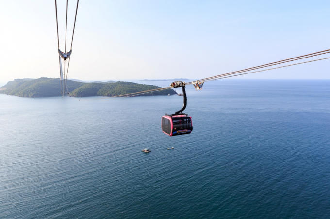 Từ cabin tuyến cáp treo dài nhất thế giới, du khách như bị mê hoặc trong một hành trình khám phá Đảo Ngọc từ trên cao vô cùng thơ mộng và kỳ vĩ. Bức tranh thiên nhiên được sắp đặt diệu kỳ với những mảng màu sống động: xanh lam của trời, xanh ngọc bích của biển, xanh rì của những cánh rừng già và những bãi cát trắng mịn như kem bên dưới sẽ là một trải nghiệm thư thái, lãng mạn đến khó quên trong ngày đầu năm mới.