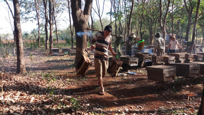 Thời điểm này, người nuôi ong đang vào mùa quay mật chính.