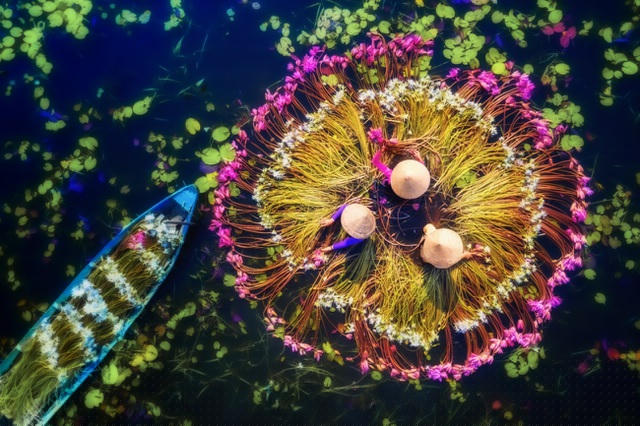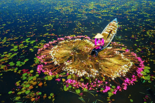 Thu hoạch hoa súng ở Long An, Việt Nam (Ảnh: Trung Pham Huy). Tác phẩm được đề cử ở hạng mục “Con người”.