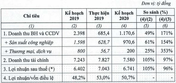 Bên cạnh đó doanh thu tài chính năm 2020 dự kiến thấp hơn năm 2019 do giảm lãi ngân hàng và tác động của dịch bệnh Covid-19. Do đó VEAM đặt mục tiêu doanh thu công ty mẹ đạt gần 1.171 tỷ đồng, tăng 71% so với năm trước. Lợi nhuận sau thuế dự kiến 6.741 tỷ đồng, giảm 4% so với cùng kỳ.