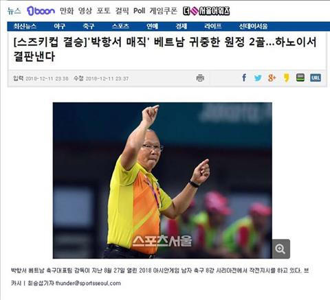 Giờ đây các từ khóa như "đội tuyển Việt Nam", "Park Hang-seo", "bóng đá Việt Nam" đều dễ dàng được tìm thấy trên các tờ báo Hàn Quốc như Chosun Ilbo, Yonhap News, Korea Times, Hani...
