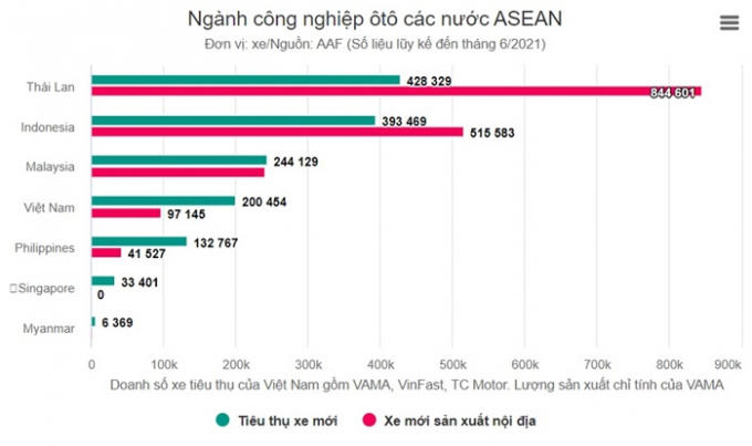 Theo thống kê của Hiệp hội các nhà sản xuất ôtô Đông Nam Á (AAF), thị trường ôtô Việt Nam tiêu thụ 150.481 xe (bao gồm khung chassis xe buýt) nửa đầu 2021. Nếu cộng thêm doanh số của VinFast và TC Motor - hãng bán xe Hyundai, tổng lượng xe mới bán ra ở Việt Nam là 200.454 xe, xếp thứ tư trong khu vực.
