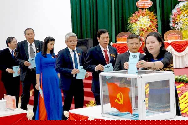 Các đại biểu bỏ phiếu bầu Ban chấp hành Đảng bộ tỉnh Kon Tum khoá 16, nhiệm kỳ 2020-2025