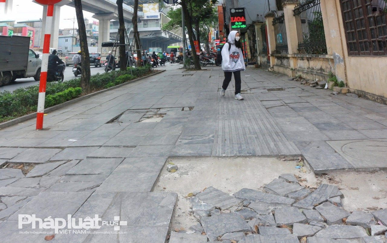 Bên cạnh đó, thời gian vừa qua, công tác duy tu vỉa hè chưa được cơ quan chức năng chú trọng, dẫn đến hiện tượng "vết dầu loang". Ban đầu, chỉ một viên gạch bị vỡ hỏng nhưng không được thay thế kịp thời, lại tiếp tục chịu lực tác động lớn (xe cộ đi lên, ô tô đỗ, người dân vứt hàng hóa, đồ đạc nặng, cứng xuống…) khiến nhiều viên gạch liền kề bị nứt, vỡ.