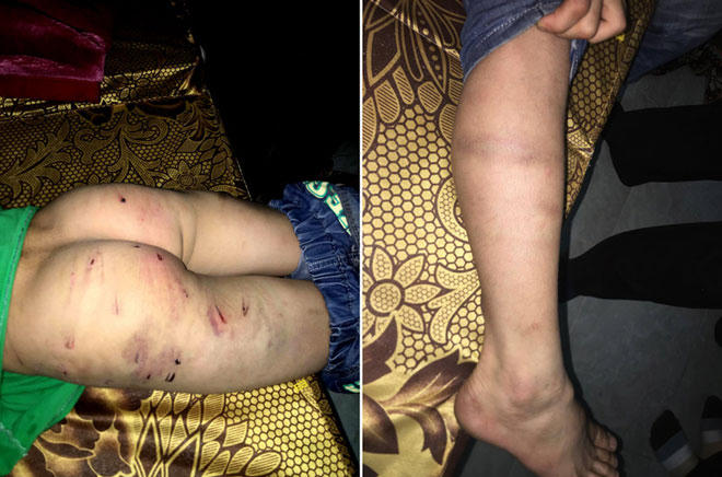 Khi ngồi cạnh mẹ cháu N, vẫn trong tình trạng sợ hãi khi kể lại những trận đòn roi mà bố đánh. N., cũng khẳng định, những vết thương chằng chịt trên mông, cánh tay, chân là do bố đánh. Cậu bé 9 tuổi vẫn còn nhớ khá chi tiết những lần bị bố đánh.