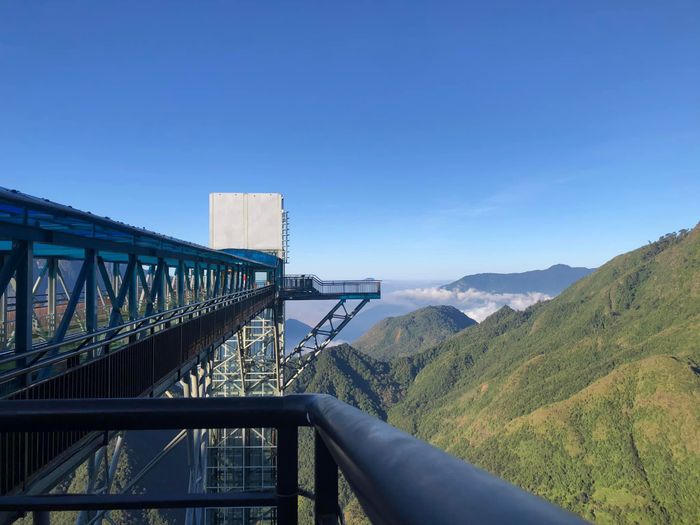 Khách tham quan sau khi mua vé sẽ đi vào lòng núi rồi di chuyển lên trên theo thang máy để lên cầu kính. Do vách kính được thiết kế trong suốt nên du khách đứng trên cầu, có thể thử trải nghiệm ngắm cảnh từ trên cao.