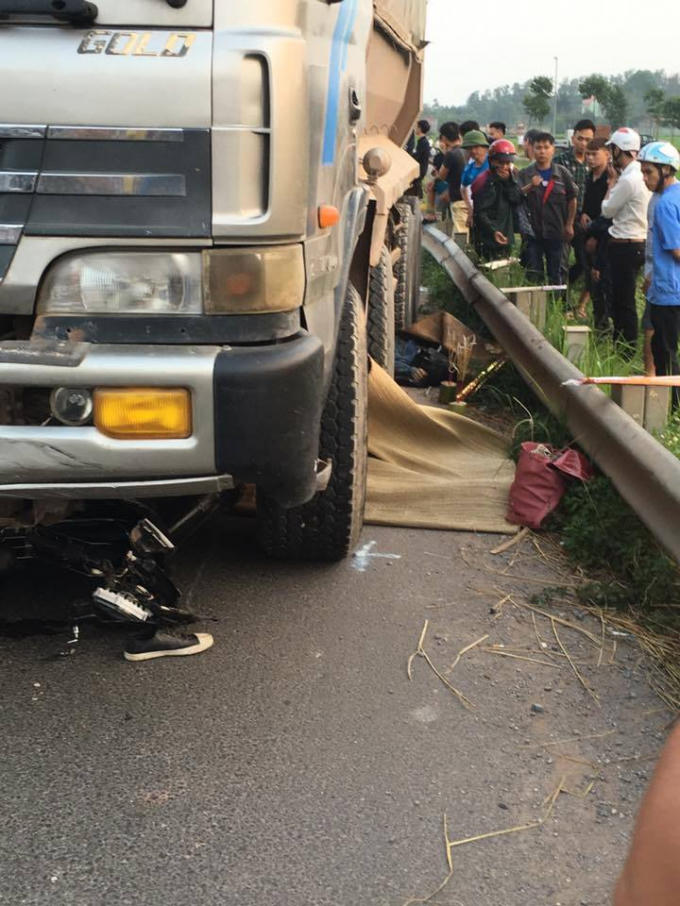 Xe tải chạy hướng Hà Nội - Bắc Giang đã đâm vào chiếc ô tô con và xe máy đi ngược hướng. Hậu quả làm 2 người (1 nam, 1 nữ) ngồi trên xe máy tử vong tại chỗ.