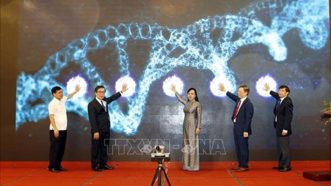 Bộ trưởng Bộ Y tế Nguyễn Thị Kim Tiến cùng các đại biểu thực hiện nghi thức khai trương Cổng hỗ trợ giao dịch điện tử y tế.
