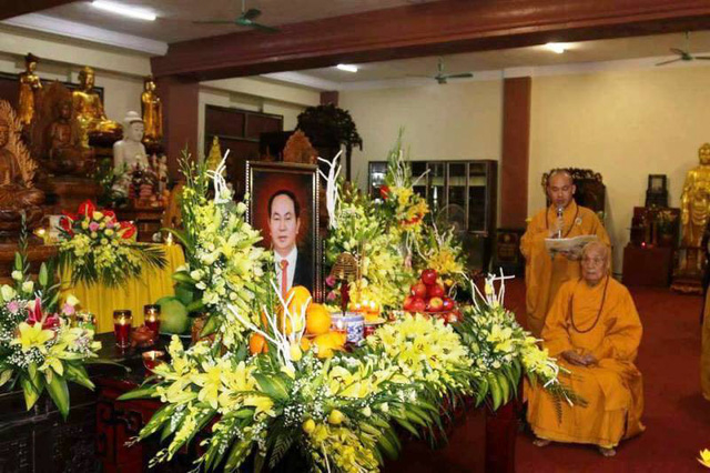 | Các Phật tử tại Ninh Bình dâng hương cầu siêu cho hương linh Chủ tịch nước Trần Đại Quang. |