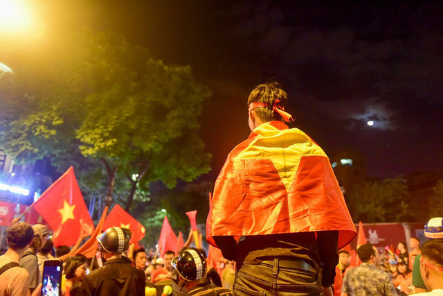 Sau chiến thắng 2-0 trước đội tuyển Malaysia trên sân Mỹ Đình, hàng nghìn cổ động viên Việt Nam đã lên dọc phố Hàng Bài và Phố Huế ăn mừng chiến thắng.
