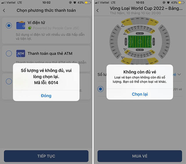 Trang mua vé liên tục thông báo không còn đủ vé