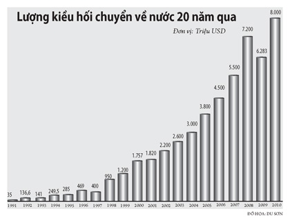 | Lượng kiều hối chuyển về nước 20 năm qua. |